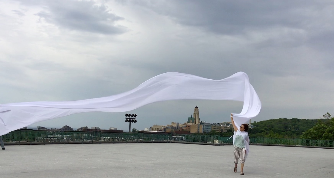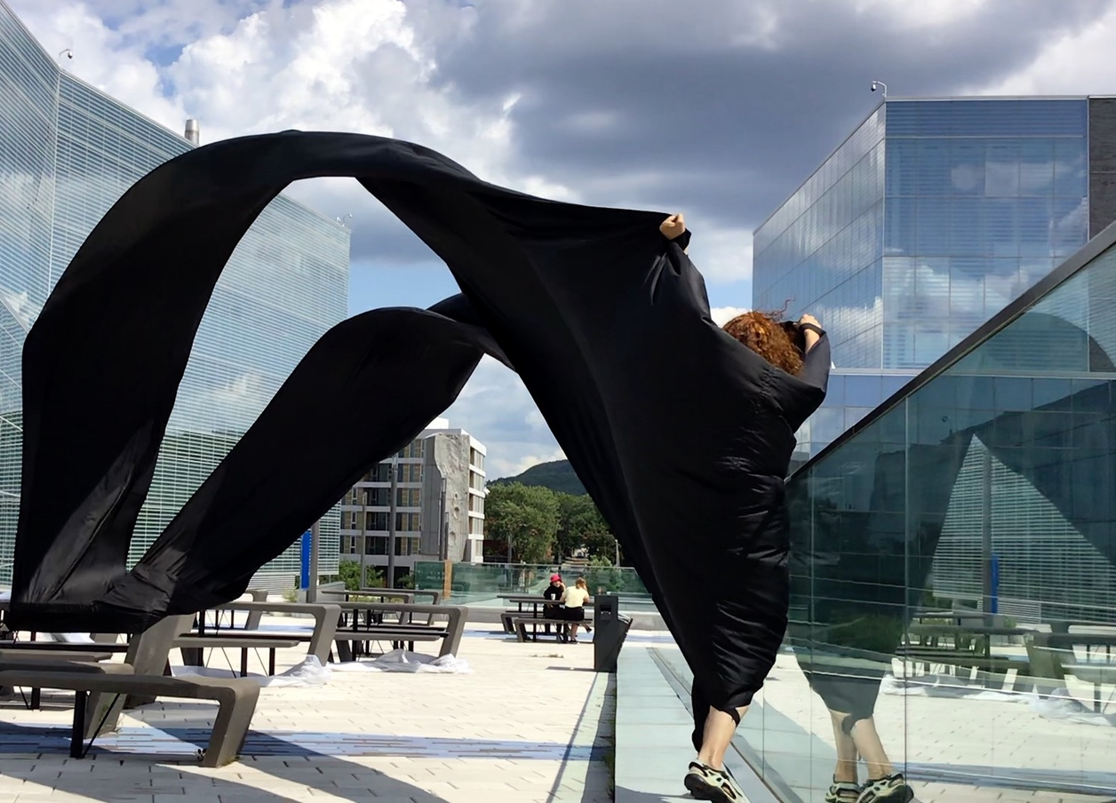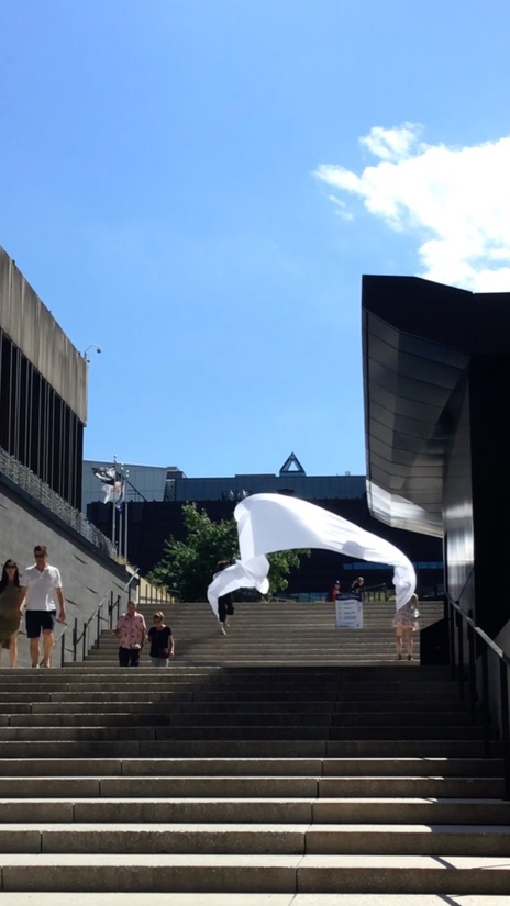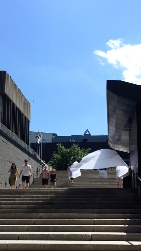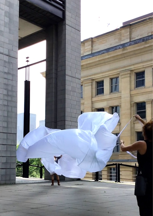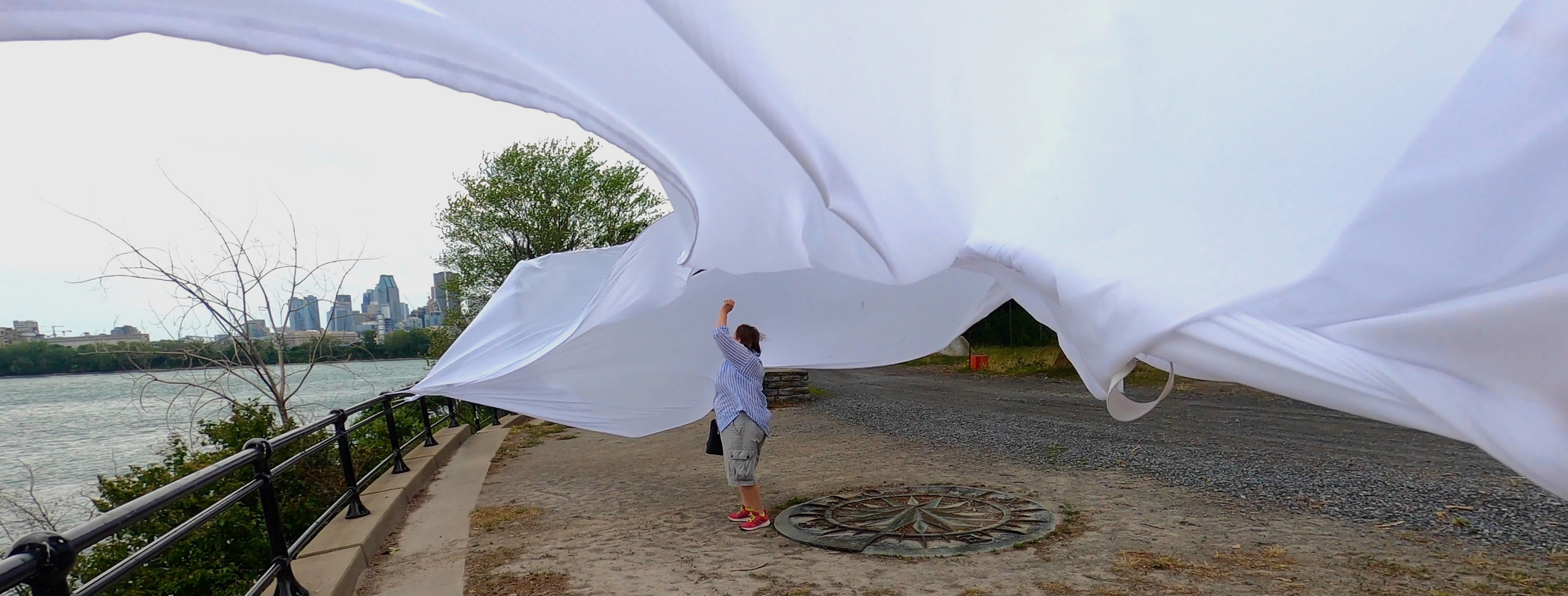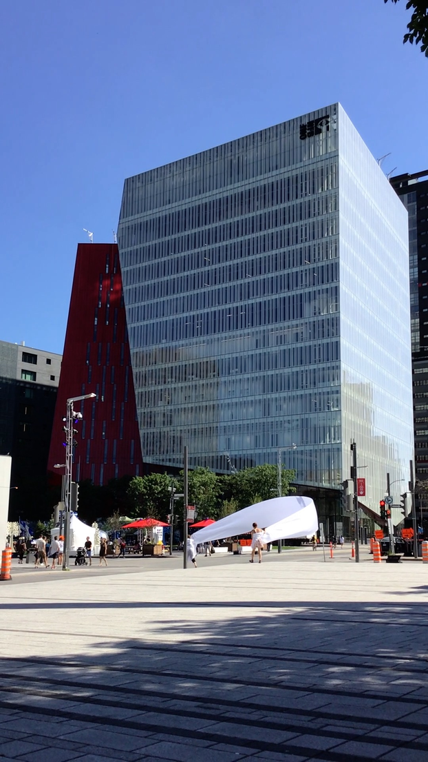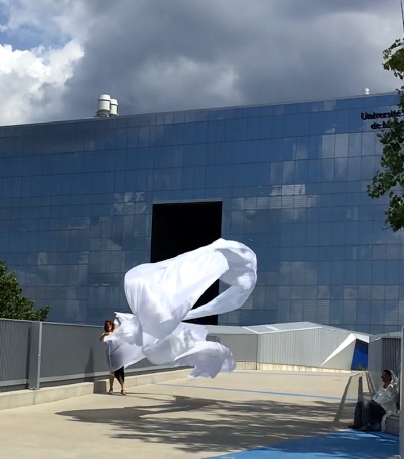 I arrived without any expectations, not knowing what it would be like or feel like. Probably a part of my brain thought I was about to fly a kite, but it was very blurry in may head. I think it is an important part of the experience, not knowing exactly what we’ll do and how it will feel. Then when we first started and I was amazed by the power of the wind. I couldn’t imagine that the force of nature would be so powerful, yet most of the time unnoticed. After 2 minutes I wanted to experiment more, I wanted to get more wind. Then started a long hunt for the wind. The wind is complex and unpredictable, it comes from certain places and at certain times but it’s hard to understand it clearly. It takes time.. And that’s one of the most important things about the Urban Surf(ac)ing  experience, it takes time.. It reminded me that anything worthy in life takes time, I started engaging more.. I sometimes got a bit discouraged when we couldn’t find the wind. Where is it? Where are these invisible forces? North our south? Maybe on the hill? After one hour of exploration, we experimented a climax.. The wind was hiding on one specific hill at this specific moment. It offered a sustained and generous strength.. This specific space started offering new layers.. There was no physical walls, but there was a construction going on around us.. Some « virtual » walls that had this specificity of being dynamic.. I call them « virtual », but there were real.. It was another dimension of materiality, that prior to this experience I had no knowledge of.. In the middle of the climax, I was feeling so connected to the experience and I wanted to keep dancing with the wind.. I remember thinking « bring us anywhere you want to bring us, we’re all yours ». The resistance was becoming the core of the connection, the core of the experience.. As long as we kept dancing together, experimenting together, the excitement would remain transcendent.. It was a moment in time indeed.. An invitation to experiment a new form of « virtuality », an initiation of a new connection with space and the force of nature.. The experience got me out of space weirdly.. Out of the space I generally experiment.. There was a sensation of freedom, which is somehow counter intuitive.. I wouldn’t think that freedom appeared when I was in resistance, somehow in the middle of « virtual » walls.. But it did appear.. Probably I understood that freedom can also be about connecting creatively with the modality of our environnement.. It’s about approaching the different dimensions of « reality » with an open mind, with a childish spirit.. It was a moment in time..