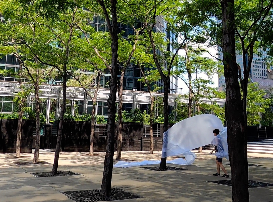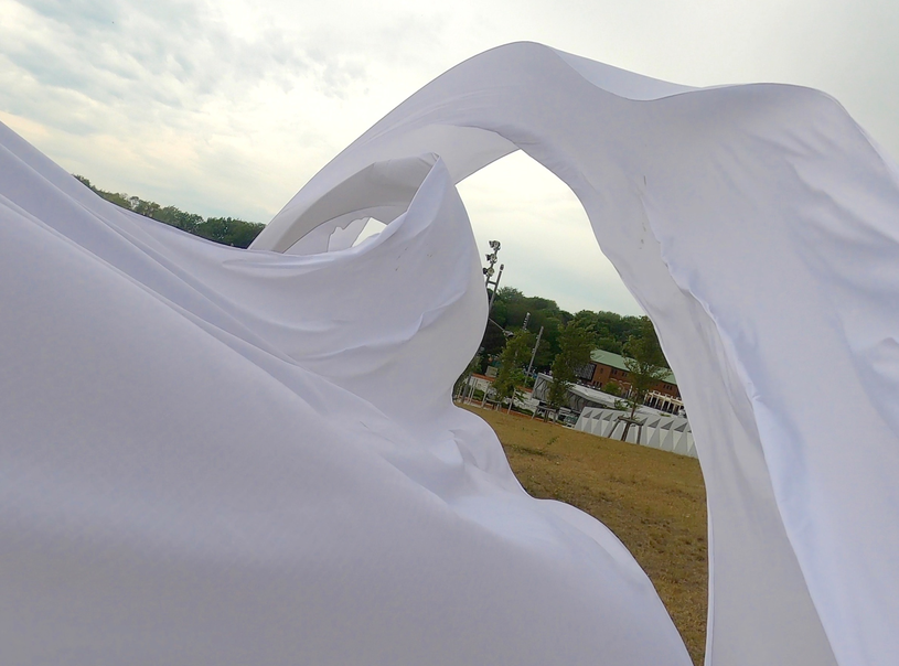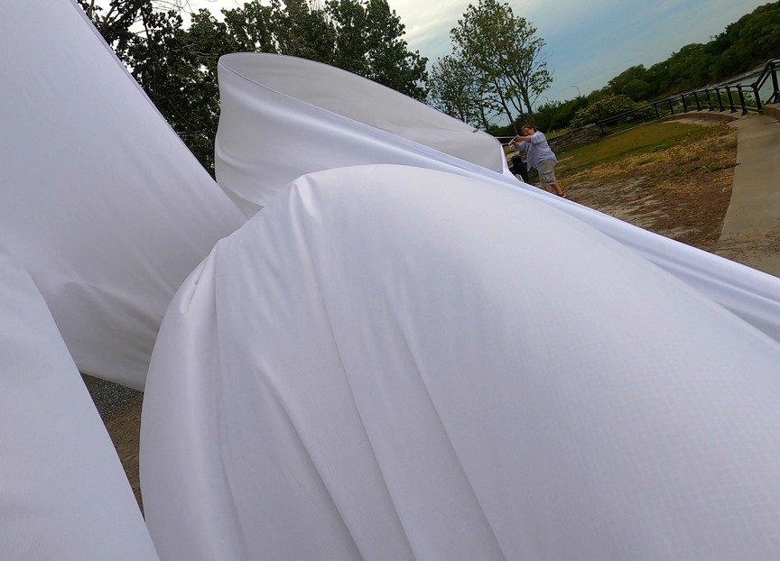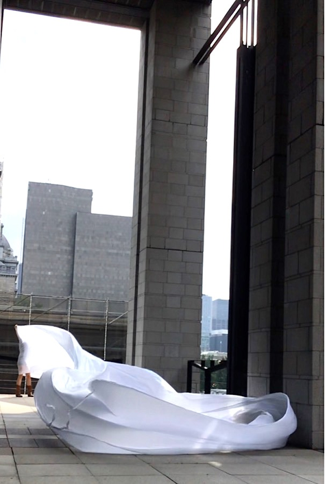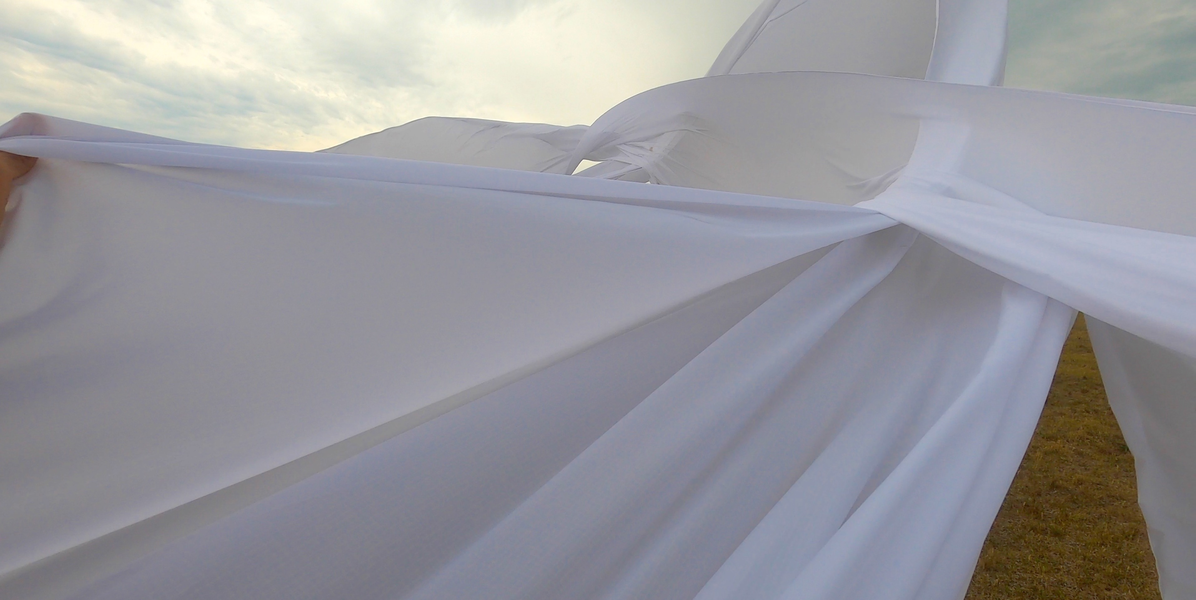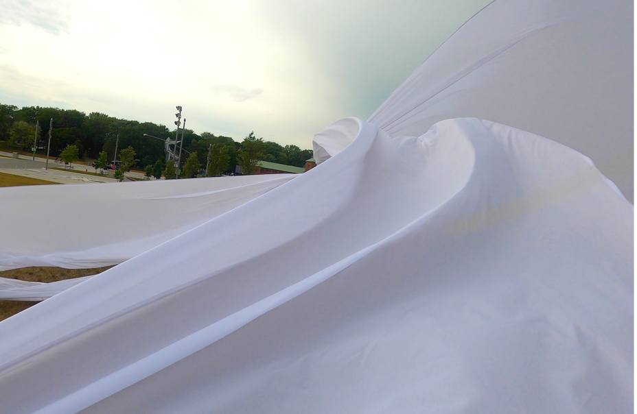 Finally finding a lighter, more sensitive Ripstop to work with enable a more acute haptic sounding and drawing of forces, currents, flows of air as it moved in space. The nature of the flows resounded with that of architecture, changing dramatically with different configurations of space.