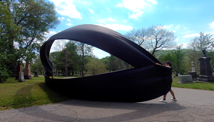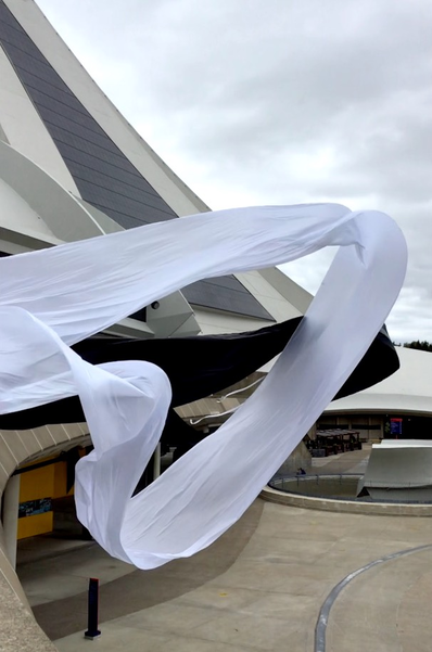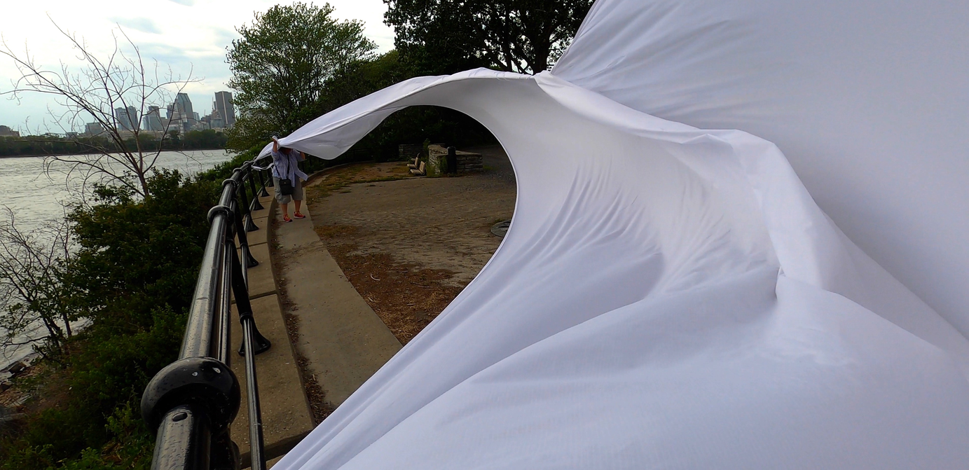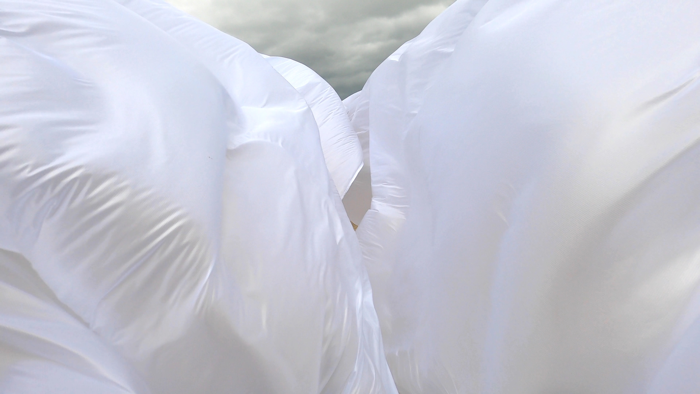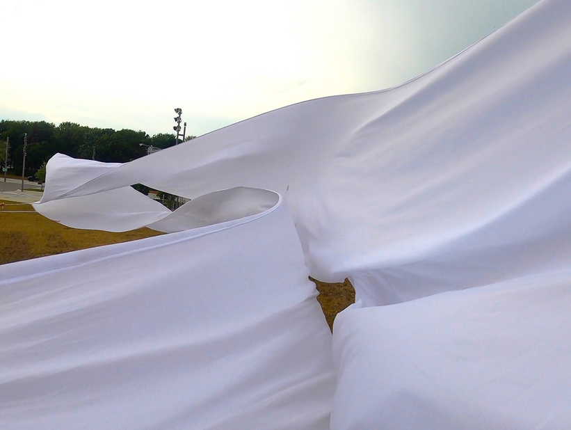 Finally finding a lighter, more sensitive Ripstop to work with enable a more acute haptic sounding and drawing of forces, currents, flows of air as it moved in space. The nature of the flows resounded with that of architecture, changing dramatically with different configurations of space.