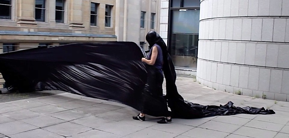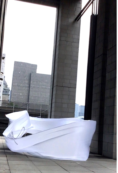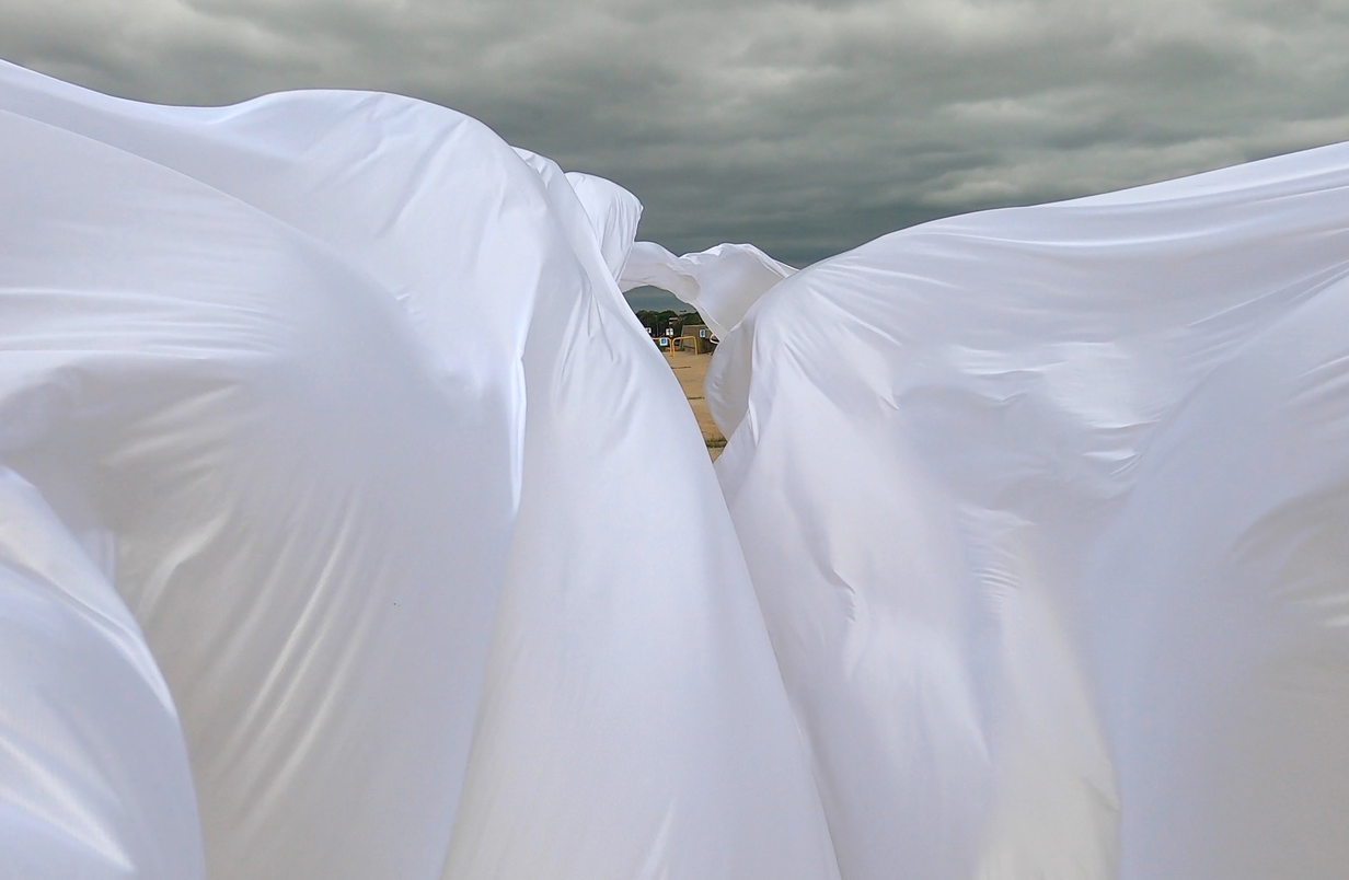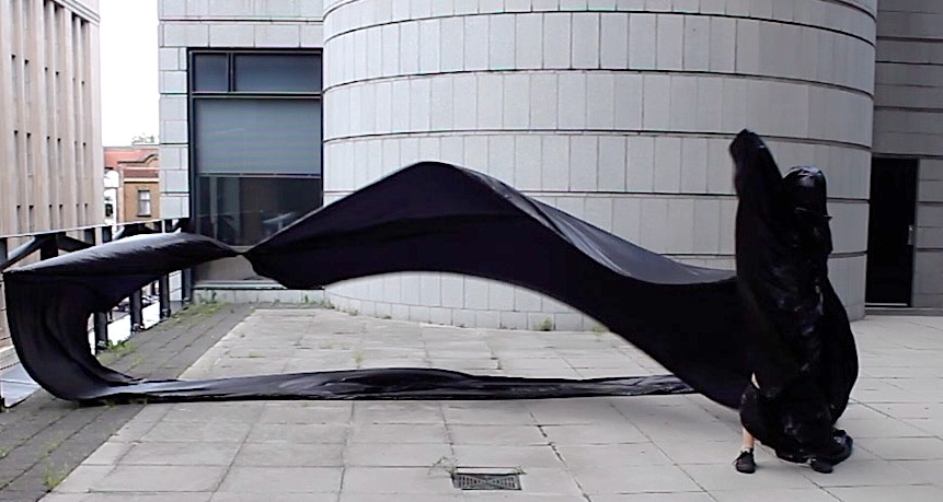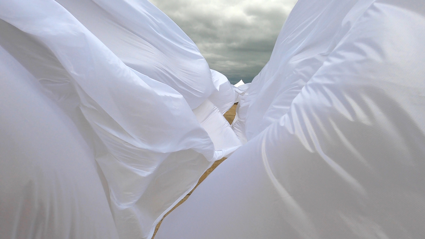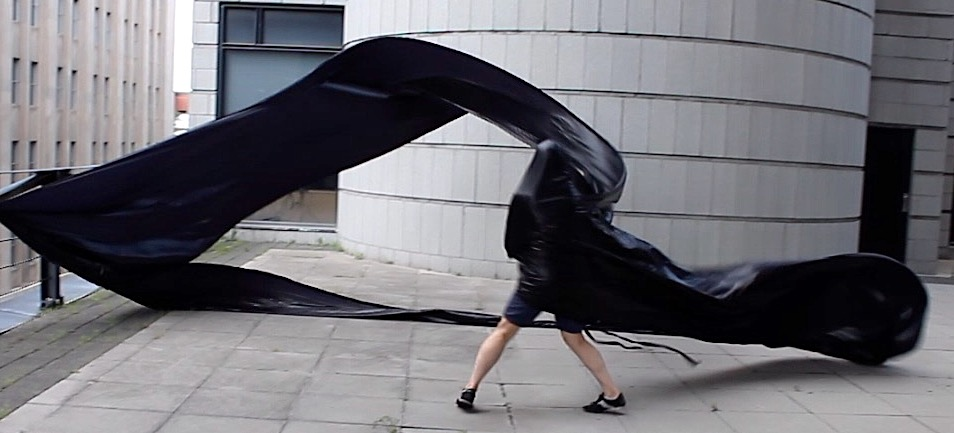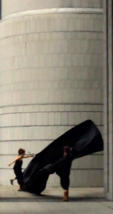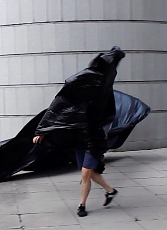 Perhaps the affective intensity of membranes in flux derived in part from their nomadic matter-of-flux, the ‘clothes-tent-space vector’ of the nomad’s outside, when what foregrounded were trajectories (souffles), and the subordination of striated architectural urban space to the informal multi-directional fluctuations of smooth space moving and morphing between its points, its verticals and horizontals. Intensities : wind, sound, light, the haptic made visible in the nomadic skin-clothes-sail vectors of the traveling interval.