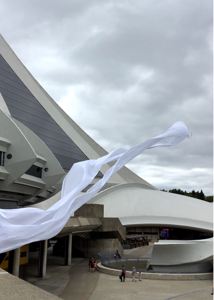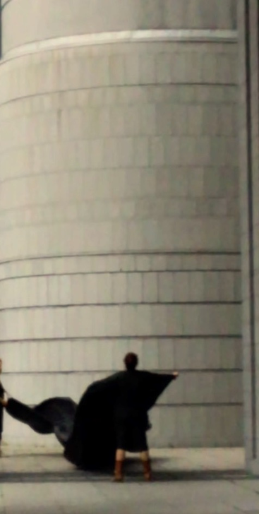 Perhaps the affective intensity of membranes in flux derived in part from their nomadic matter-of-flux, the ‘clothes-tent-space vector’ of the nomad’s outside, when what foregrounded were trajectories (souffles), and the subordination of striated architectural urban space to the informal multi-directional fluctuations of smooth space moving and morphing between its points, its verticals and horizontals. Intensities : wind, sound, light, the haptic made visible in the nomadic skin-clothes-sail vectors of the traveling interval.