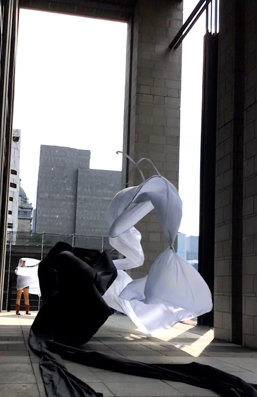 Finally finding a lighter, more sensitive Ripstop to work with enable a more acute haptic sounding and drawing of forces, currents, flows of air as it moved in space. The nature of the flows resounded with that of architecture, changing dramatically with different configurations of space.