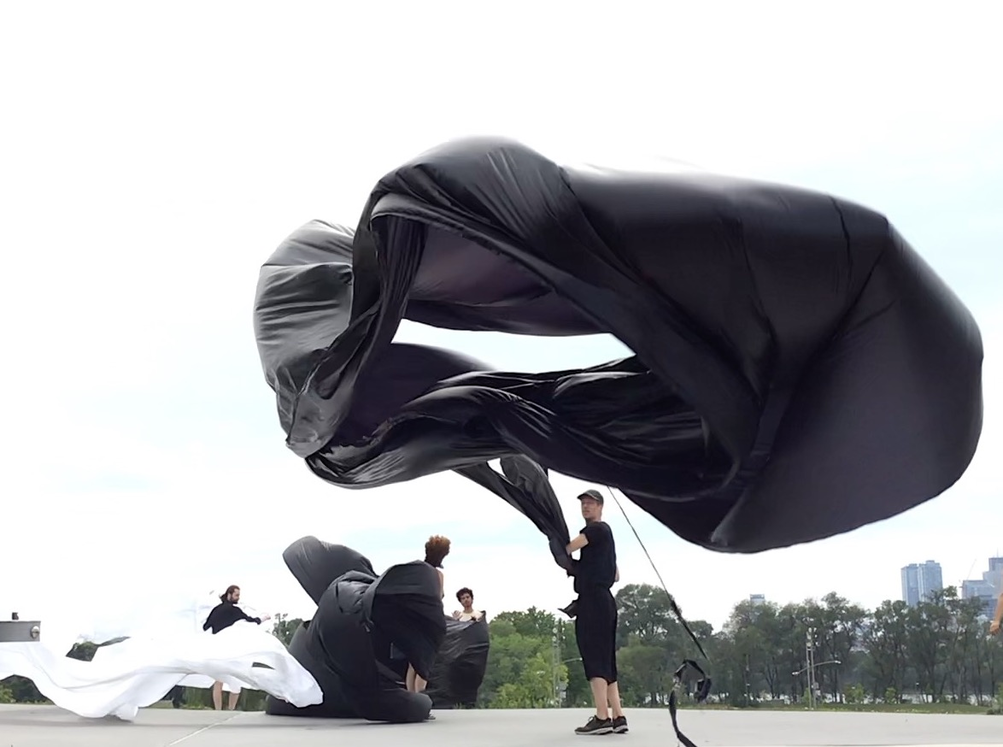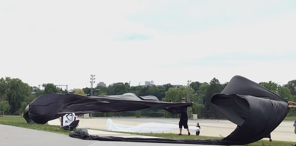 The whole thing on mastery aside, what I find interesting with this example of learning to swim is precisely the encounter with an element. Through Spinoza, Deleuze beautifully describes how there is a certain interpretation of movement and intensities going on: indeed, with a wave you don’t recognize its form and then go like, ‘oh I need to dive a bit to the right’ The interpretation and evaluation and act all go together, instantly. A body, a wave, a water. Well, this is of course much how we can see an encounter with the wind. Granted, with the urban surfing there is another material in play, a material crafted precisely to intensify these relations. You pick up these large ‘kites’ or textiles and you face the wind. It’ll start pushing and pulling, trying to constantly lift you up or at the very least blow you away. The wind is an incredible strong element you immediately know as your body enters this mode of winding. As much as it’ll make you lift up, it also brings you down precisely in surrendering to the forces of this element. In short, all the qualities of this element, from picking up to lifting off, from blowing away to sucking you in: sheer movements and intensities that can only be felt as contrasts.