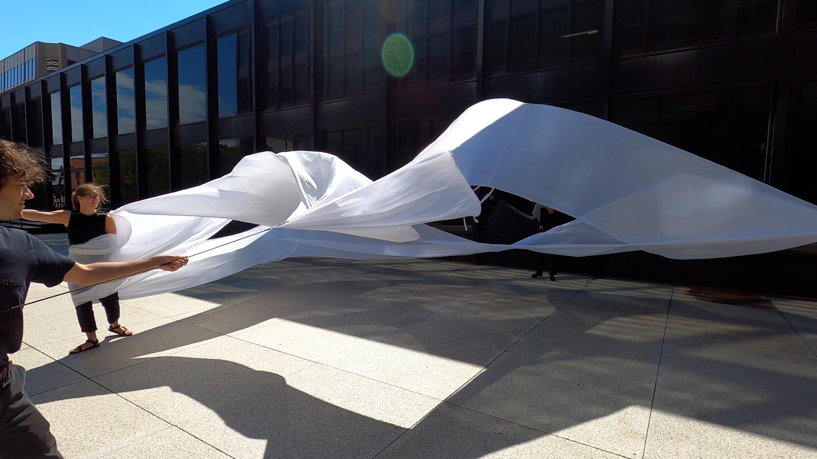The playful experimentation with urban surfacing made me wonder what it is it to play with the wind? Or, what is it even to feel the wind, an element that is truly too ungraspable yet so present that it is almost strange to think it as a thing in the first place. I was reminded of certain sports that thrive on the wind, but as with many sports they really set out to conquer this element, to master it and mobilize it in the most efficient and strongest ways. For sure there already we see a lot of the forces, but they might not be so much in play. So again, what is it to play with the wind? A bit like kiting but then perhaps with a body that is itself kiting also? Maybe there is in this play a sort of mode of existence of winding in that there is a relational play with the element of wind going on. Let me entertain this propostion a bit.