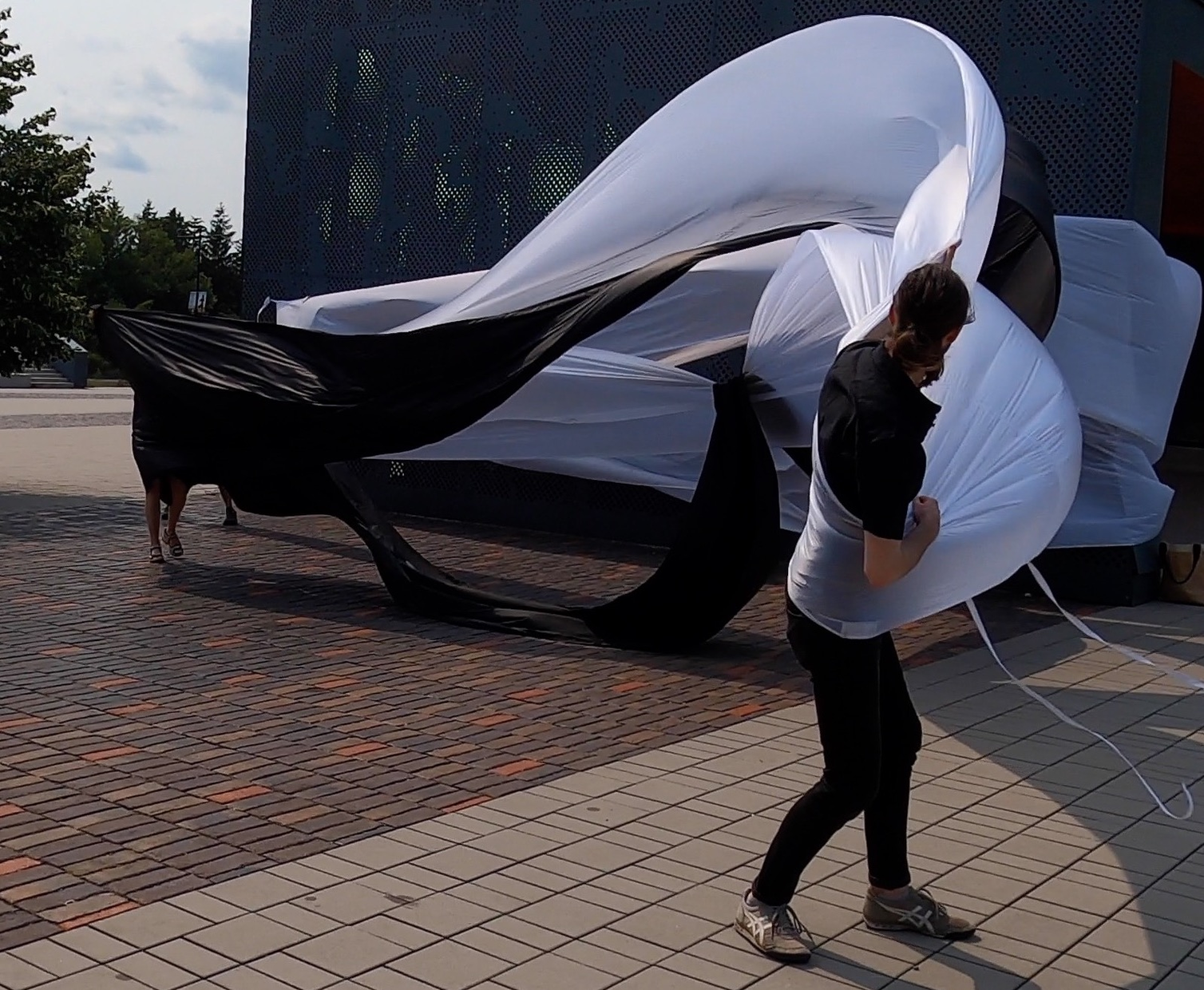 The playful experimentation with urban surfacing made me wonder what it is it to play with the wind? Or, what is it even to feel the wind, an element that is truly too ungraspable yet so present that it is almost strange to think it as a thing in the first place. I was reminded of certain sports that thrive on the wind, but as with many sports they really set out to conquer this element, to master it and mobilize it in the most efficient and strongest ways. For sure there already we see a lot of the forces, but they might not be so much in play. So again, what is it to play with the wind? A bit like kiting but then perhaps with a body that is itself kiting also? Maybe there is in this play a sort of mode of existence of winding in that there is a relational play with the element of wind going on. Let me entertain this propostion a bit.