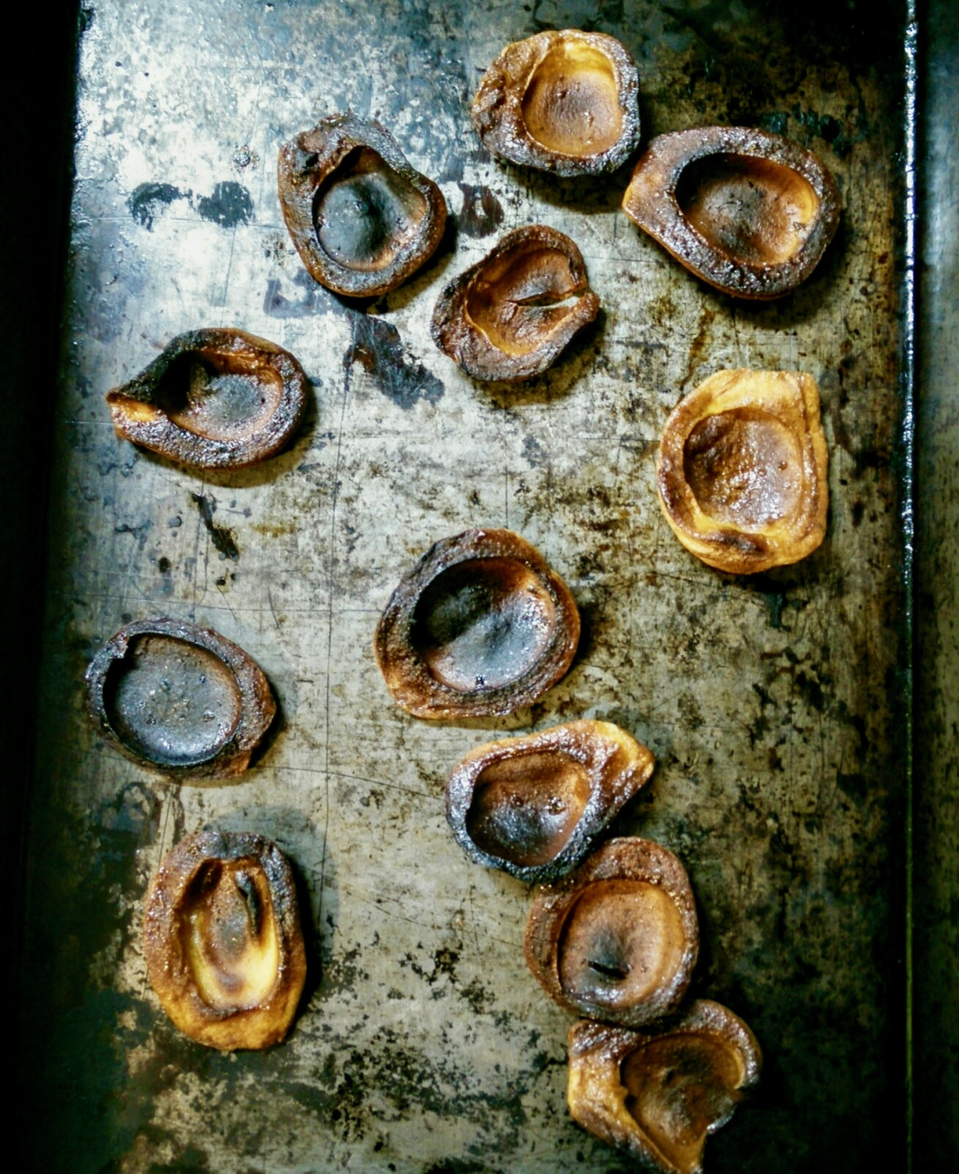 The third iteration of GIY merged with Ecstasies of Influence (E°I), a collaboration with composer-conductor-scholar Sandeep Bhagwati and the Ensemble Ekstasis in Montreal, QC. E°I explored the ‘translation’ of different types of artistic practice into musical composition and performance. Over the course of four months, eight musicians and I ‘rehearsed’ in a series of exploratory sessions, each riffing on the key themes of ecology and improvisation. Food offerings served to prompt the group in various directions. Initially, these were based on Gigi’s starter, including freshly baked bread, sweet-salty cookies, and kvass (a fermented beverage made with old bread). Later, we moved on to ‘skins’ made from agar agar, caramels dusted with a range of spicy, pungent, and acrid powders, and fatty pastes and sharp liquids made from edible stuff that wasn’t quite eatable. The tastes and smells and textures that filled the black-box rehearsal space translated into sounds and movement and affect. But they also brought increasing awareness to the materiality of the musicians’ own instruments—the exotic woods and rare metals of a cello, the cold and sharp elements of found percussion devices, the saliva and sweat of a vocalist’s body. At the final ‘un-concert’, we came back to this sensoriality, as each performer spoke of their instrument and its ecologies, both material and social. We then assembled a giant angklung, an Indonesian percussion instrument made of tuned bamboo pieces. We were silent, we were raucous; we played in light, we sat in dark. From a small, raised platform, I distributed new food offerings to each musician, to be incorporated—or not—into their continuing performance. These offerings took form as my material interpretations of our relationality, sometimes riffing on rehearsal foods, sometimes drawing inspiration from a different moment during the previous four months. A final gesture—tossing a paper-wrapped loaf of Gigi-bread toward Sandeep—closed the piece. Afterward, the loaf was shared with the audience, each person tearing off a piece, inhaling its aromas, and then chewing and swallowing thoughtfully.