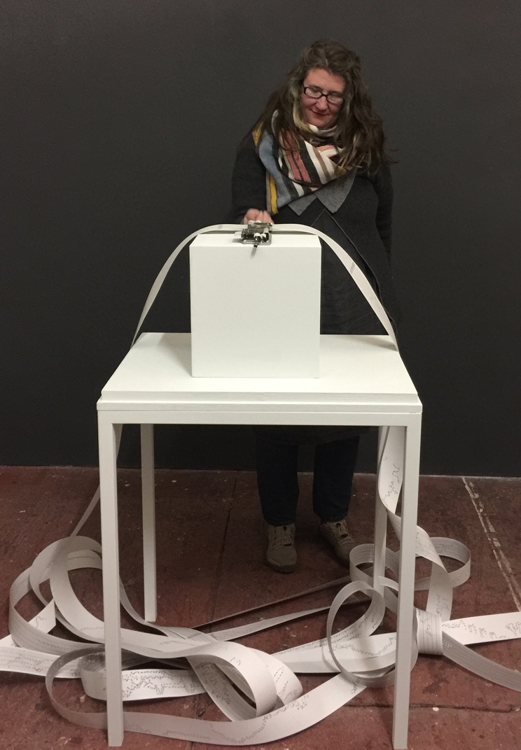 Danica Maier playing the initial music box piece Score at Backlit Gallery, Nottingham in the exhibition Bummock: The Lace Archive, 2018.