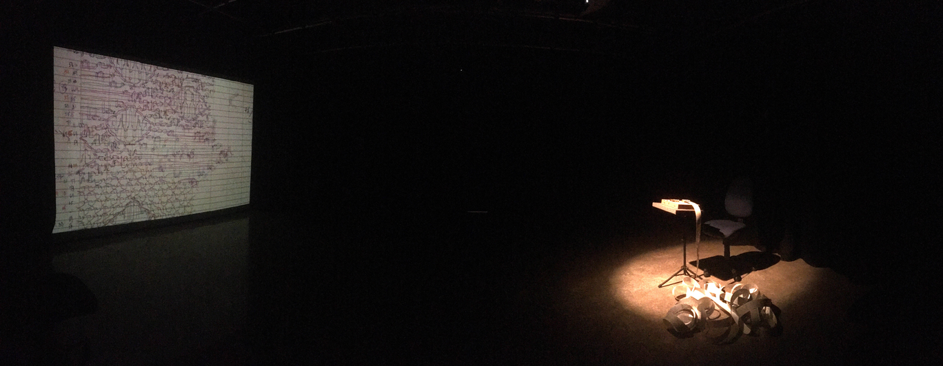 This way of working has resulted in a variety of compositions/installations derived from a singular work, each of which contains various degrees of repetition and degrading repetition. These works are characterised by ‘faults’ in the repeated elements: vertical elements may appear to be presented simultaneously, but desynchronisation ‘breaks’ the repetition felt in the original; while horizontal repetitions of notation result in different sonic results.