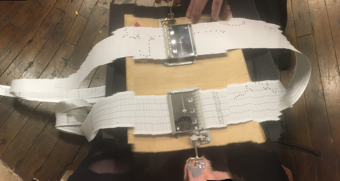 Danica and Martin were invited by the GP artist group to participate in Approaching Affective Zero (AAZ) a monthly programme of events promoting a wide range of creative disciplines and collaborations including live sound, performances and projections. For this event Score: Mechanical Asynchronicity played experimental iterations of the four vinyl records accompanied by Annie Morrad playing improvisation on saxophone. Audiences members were also invited to suggest new arrangements of how the records were played as well as engage with the music box and its ‘recorded’ sound as heard while hand cranking the punch card through the mechanism.