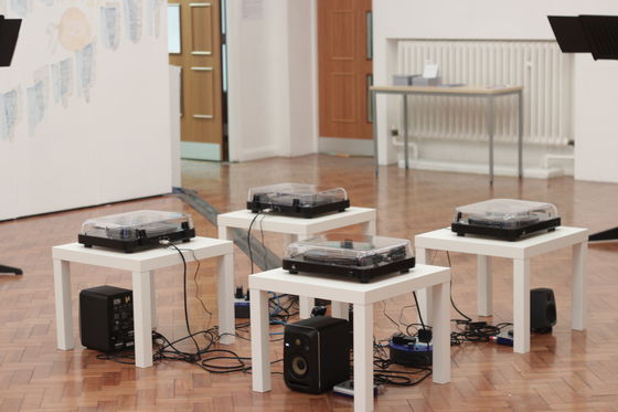 In its totally the piece includes four vinyl records, played on four record players and four live musicians – from this there are multiple versions that can be experimented with and played. (Solo live musicians can duet with themself on vinyl; 2 live musicians with 1 alterative instrument on vinyl; 2 live musicians with alternative instruments on 2 vinyl; no live musicians and a combination of the 4 vinyl’s; 1 live and all 4 vinyl’s; and so forth)