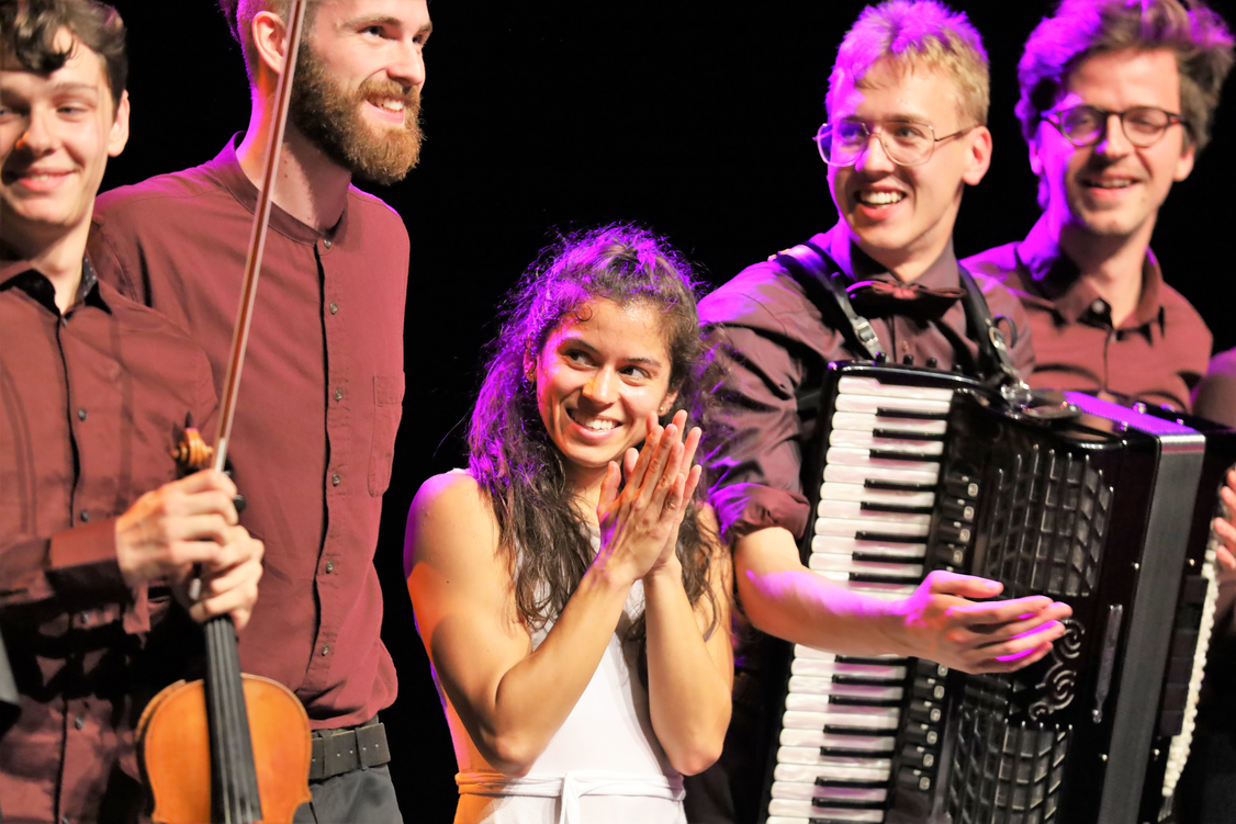 with Quinteto del Diablo, dancer Rosanna ter Steege, and director Laura Suárez