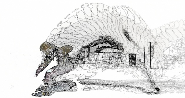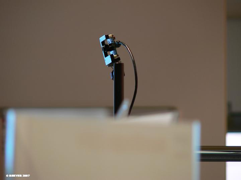 Stand still, you disappear. Move, you see the difference between where you are now and where you were just now. With stillness, you disappear from the projected field. By moving, you generate the form your changes make in space over time. Movement reveals the architecture behind it. The mover masks, defines and reveals what is underneath. A slow decay of the first image/location over three seconds, creates the impression of a continual transition between points in space.