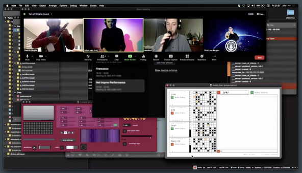 In this session musicians and researchers Richard Barrett and Johan van Kreij presented their projects. Working at the intersection of improvisation and technology, each of them brings a unique perspective on collaborative music making. Their ideas address the challenges we are facing in the recent world-pandemic period, and suggest how improvisation might play a crucial role in interlocal networks and bridge the physical gaps between collaborators.