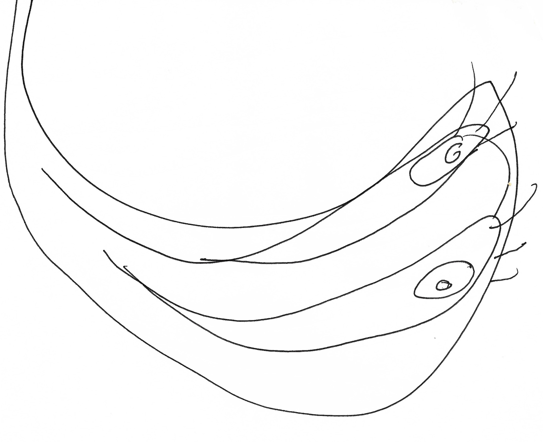 Here you are. Here...I am not so sure. I may be safe, but I am unsatisfied. The line has assembled itself into a body: mine, allegedly; semi-human, fringed, hunched and peering; mimicking the sensation of the elbows grasping frantically for one another as though flailing for lifebuoys. The figure is legless, and (for some reason) emerging, quasi-gaseous, quasi-liquid, somewhere between a chrysalis and a poured substance. The body finishes in a conical point.