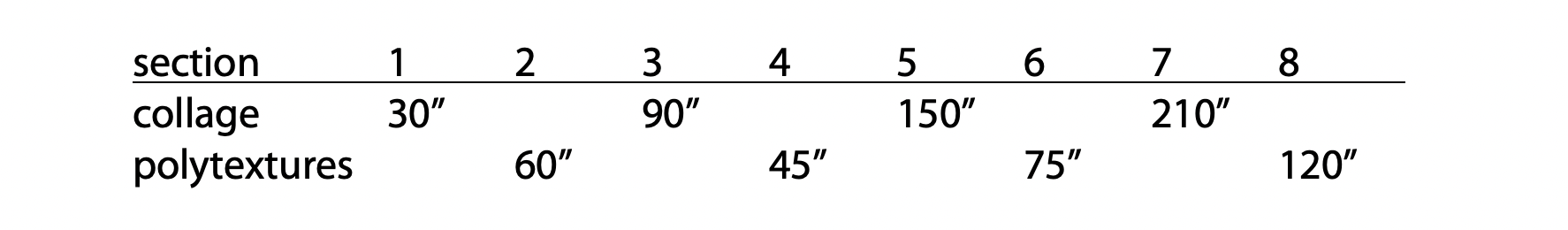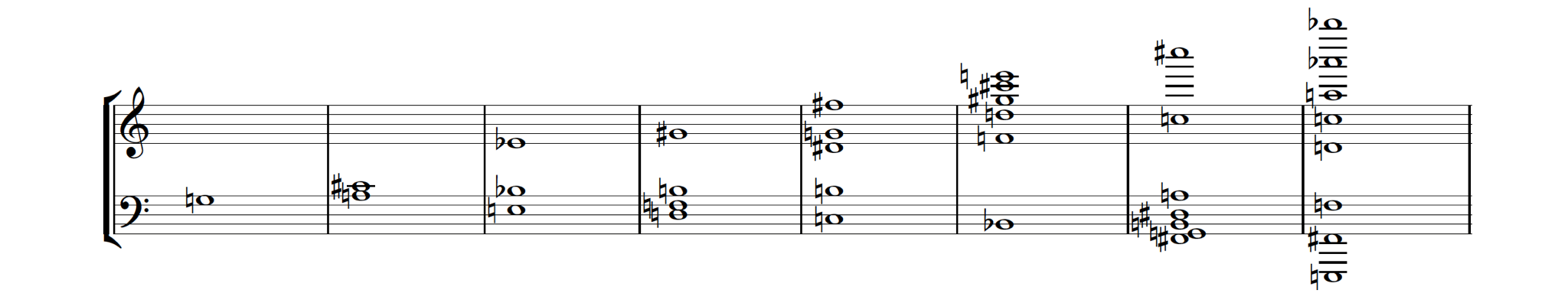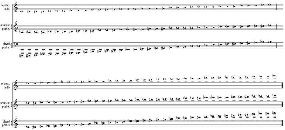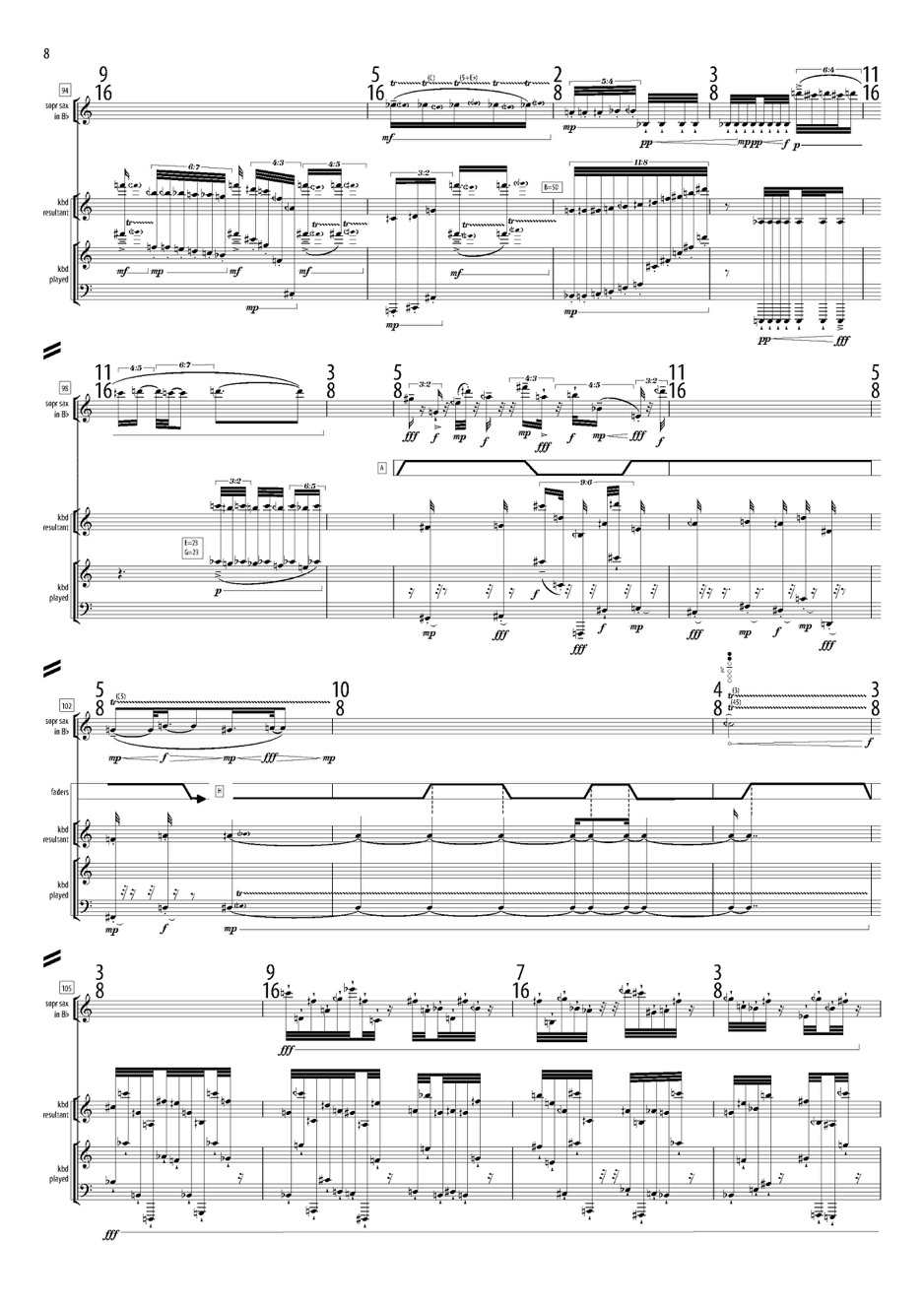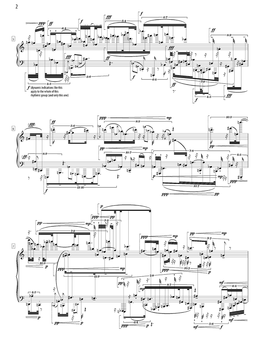 This is a particularly explicit (or crude!) example of the kind of process which, mostly in more oblique forms, is very frequently present in my notated compositions, in the suggestions I might make for their extension into spontaneous developments in some compositions like the aforementioned tendril, and in the way I seem to think about structural relationshops in free improvisation.
