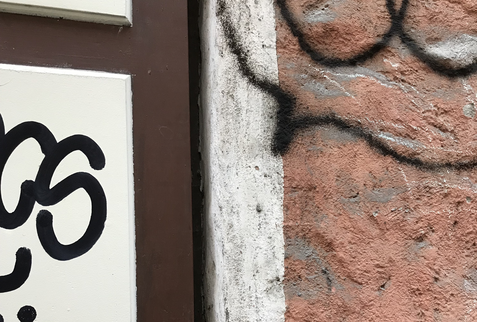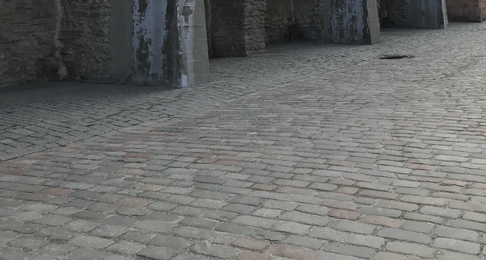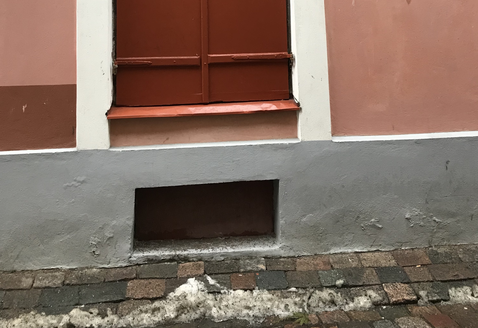 I’m very close now to the Tallinn Art Hall. The exhibition in the Art Hall itself upstairs is not available to me because the windows are too high but the Art Hall Gallery on street level is well lit, and I can see the work in the front room.[38] There are paintings on the walls, but the most dominant part is a large pink wall painted to look like brickwork that is angled and takes up most of the space. This pink wall is echoed by a stack of what look like printed sheets of the same pink brickwork on the floor of the gallery.