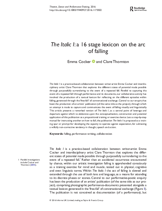 Towards an Attitude of Openness: Preparing for the Unexpected Emma Cocker's key-note presentation at Uncertain Knowledge(s), a one day colloquium organised by the Material Encounters research group, Birmingham City University, 7 July 2021.