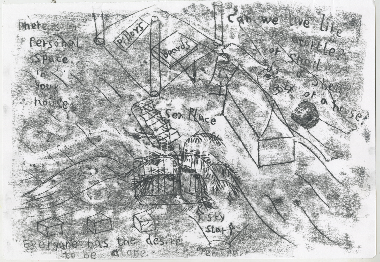 Making the fantasized 小屋 appear, and become pregnant with dreams in the closed space.