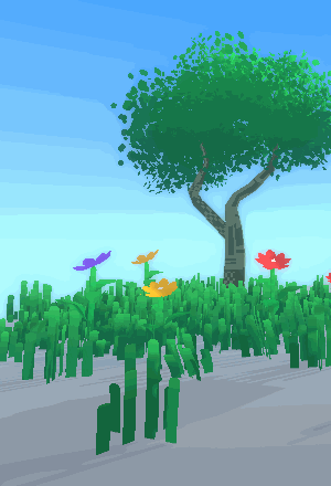Even the leaves on the trees and the grass is squared like a pixel.