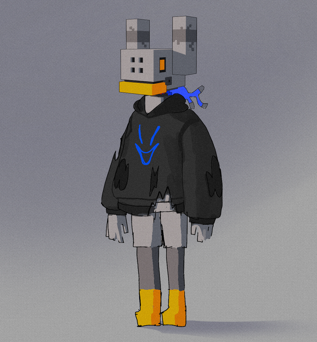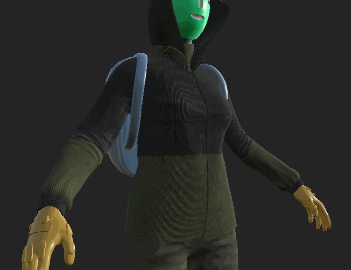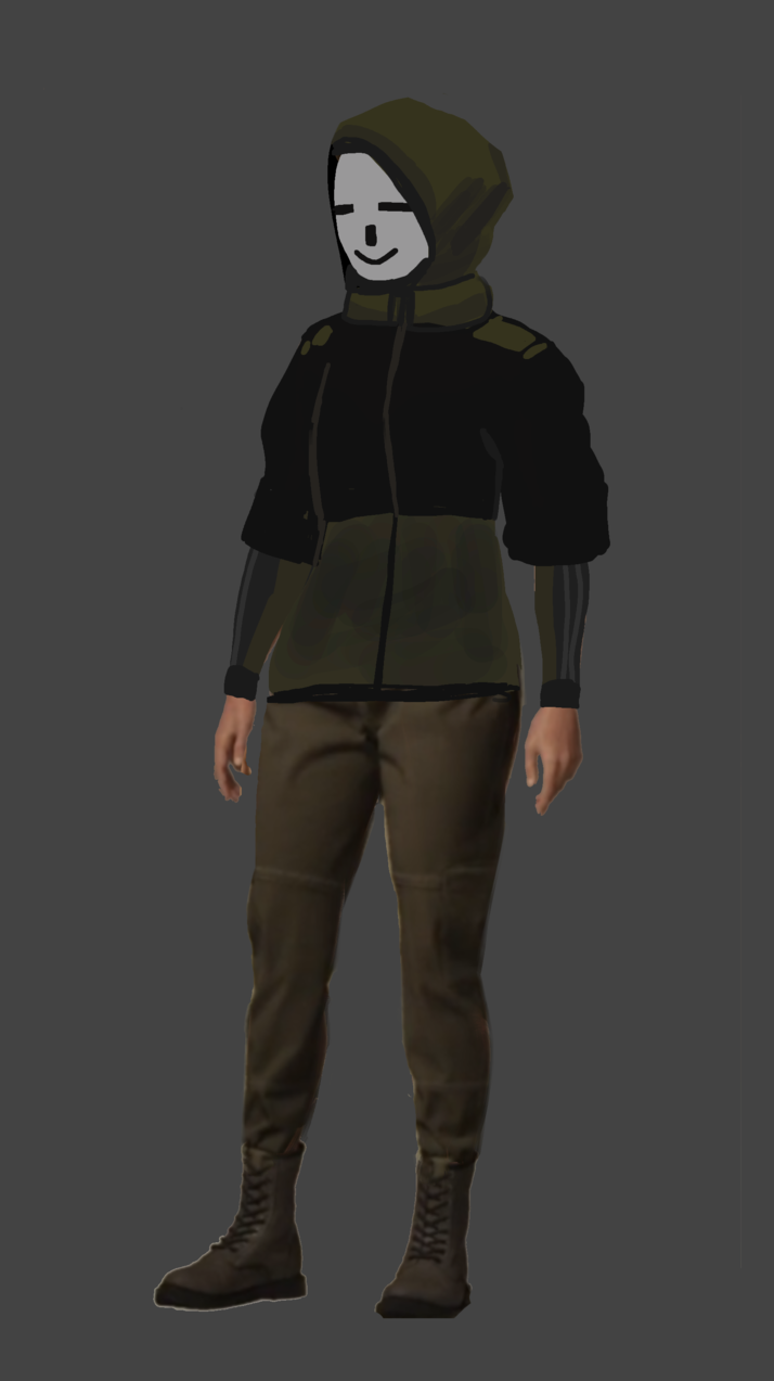 I decided it was best to gives this character a mask. This way I would not have to struggle with making realistic facial animations.