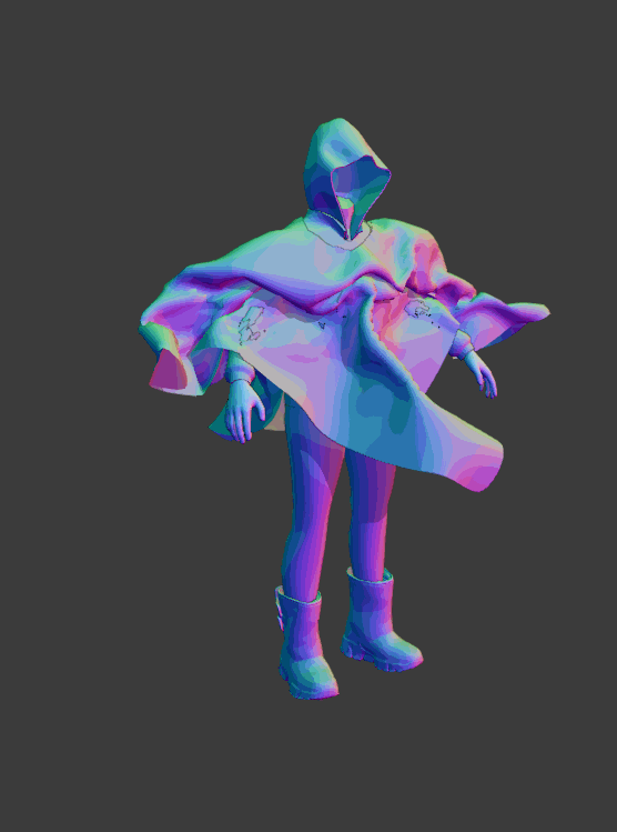 I made the clothes for this character by using cloth simulations. I had to experiment a lot before finding the right settings.