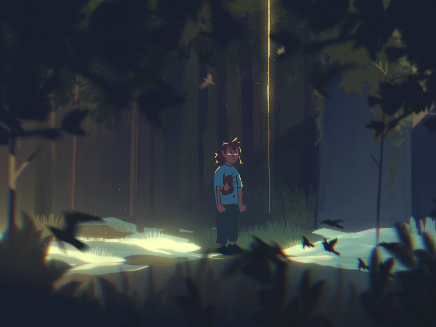 At first I wanted the scene by the lake to have a cold wintery feeling.
