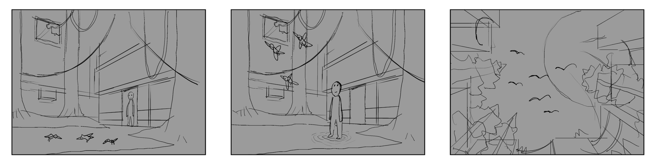 The storyboard frames I made were useful. I took direct inspiration from them when making the final concept art for the world.