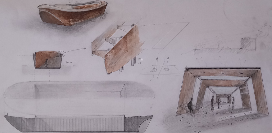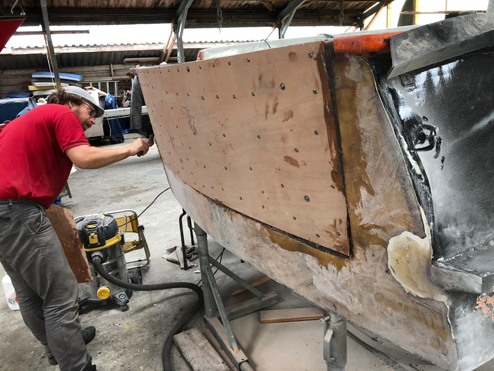 Sculpted and painted wood, combined with treated rusty objects. Duct tape with boat paint models for metal sheet sculptures, 2020. Digital drawings, 2021, 2023. Dutch steel sailing boat part-restoration and renovation, Amsterdam (with Sean A. Hladkyj), 2019 until summer 2020.