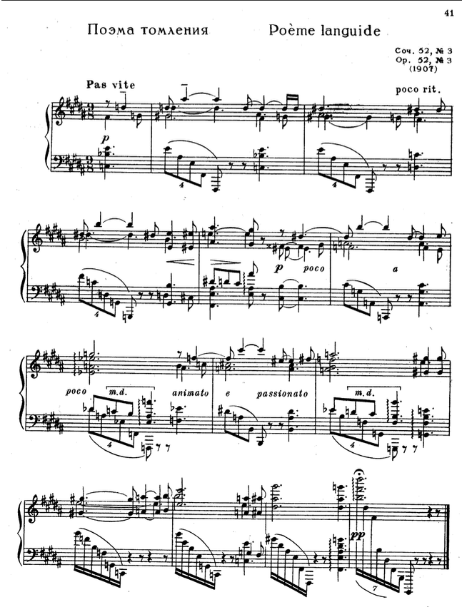 (Examples: Alexander Scriabin Danse Languide, Op.51 No.4, Excerpt; Nuances Op.56 No.2)