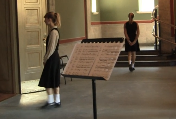 The space-related musical rehearsals could then begin. Due to the limited time and other practicalities, the singers would rehearse in parallel in their different spaces in the building. The disadvantage of this was that I had to be everywhere even though I could only be in one place at a time. The advantage in it was that the singers and instrumentalists could get used to the structure of the piece from very early on and a shared trust that we are all giving our best at the same time, just not in the same room, was established from the first moment. It was also helpful to get used to the musical parallelism in the building as the individual duos performed their music independently from the others. This parallelism is defined by the similarity of form that allows the performances in each room to develop in parallel and in that way they are in dialogue, but it also ensures that the characters’ worlds never meet.