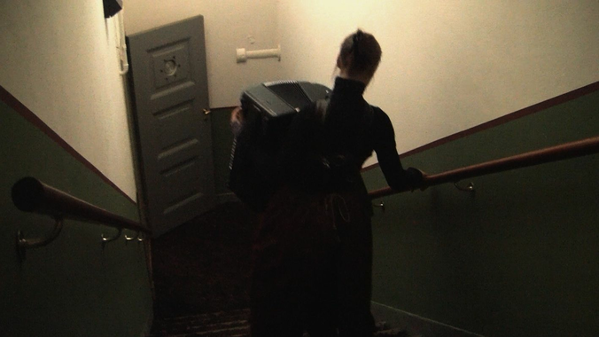 I chose an instrumentation with a contrabass, an accordion, a violin and a cello. The conceptual idea was that the instrumentalists were working in the building, helping the characters to be able to tell their stories inside their universe. In order to perform this practically, and to be able to have a bigger variety in the musical expression, I decided to rotate the instrumentalists three times. In this way each singer would be accompanied by three different instruments over the course of the piece. The composers received a schedule describing how much time each instrument would join the character they were writing for, and at what point the instrumentalist should do so. The arrangements were to be made for one instrument at a time to join a singer. Consequently, this could already change the classical piece the music was based on tremendously by simply becoming a very reduced version of an original that was composed for an orchestra. The composers could also quote parts of a piece and compose around it, or elaborate existing themes, or rearrange the music for a specific instrument in a more traditional way. The difference in how the composers approached the task made the different characters’ journeys even more individual.