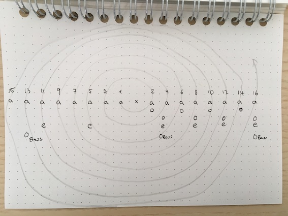 My work with Musica Munda led to the development of the project Musica Mundana. This project also marks a big change in my practice. In Vokal-De-Konstruktion (2017) and Schnitzler’s Dreams (2015) I worked with already existing music. In Voiceland (2016 -) I collaborated with a composer to create the music. Musica Munda (2018) was my first step into exploring the creation of spatial sound compositions from scratch, based solely on the space and the performers, and their interaction.