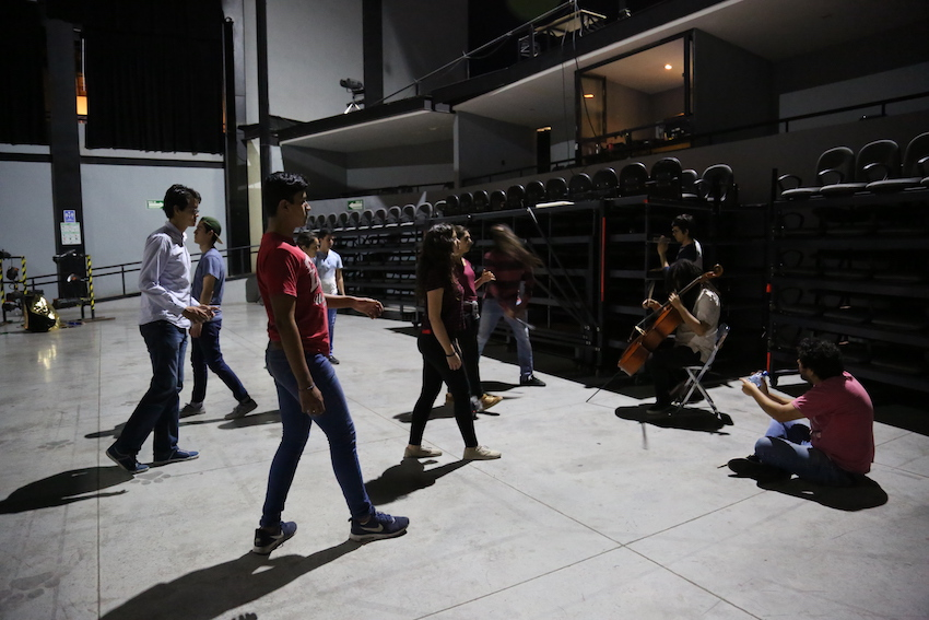 During our first days in the space, the music students from the University of Guadalajara explored the building with voices, drumsticks and home-made percussive tools, bows and a cello. Questions that arose during this first exploration were: