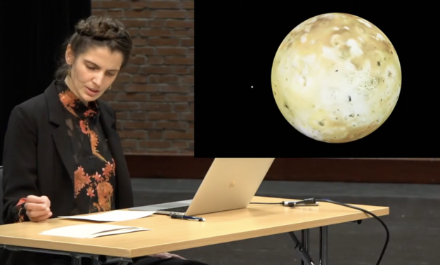 While I was looking for a suitable space and participants I also established contact with several scientists. For over a year I had an extensive dialogue with asteroseismologist Donald Kurtz, who was very helpful in teaching me more about the music of the stars. Since I was especially interested in relations between bodies in space, he recommended that I get in touch with Kelly Hambleton, an expert on heartbeat stars (stars that are interlocked). Donald also recommended Zoltan Kollath who sent me the sonifications of real stellar observations, based on data processing that you can listen to on this page. Here in Stockholm, I started to meet with astrophysicist Lorenz Roth. He shared with me his research into Jupiter and the Galilean moons, along with other parts of his scientific research.
