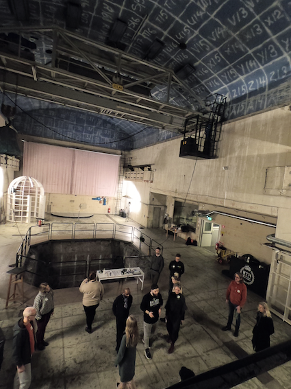 My plan was to create Musica Mundana as a spatial musical performance at R1 (Reaktorhallen) in Stockholm in spring 2020. Due to COVID-19 the process was stopped. This text is an attempt to explain the process thus far and to imagine its future. The thought and design process that I will describe in this text is based on experience that I have had with the space of Reaktorhallen during a two-day introductory workshop for Musica Mundana that I held in January 2020 with the vocal ensemble Roliga Sångförsöket and the percussionists August Wangendahl and Mattias Yilbar Norgren, as well as on information that I have gathered through conversations with the physicists mentioned above. When I held this workshop, I had already engaged with Reaktorhallen as one of my voice teachers during the project Spaces as Voice Teachers. This helped the singers and I to find vocal expressions that were specific to the project’s space-voice-relation in the short time we had together.