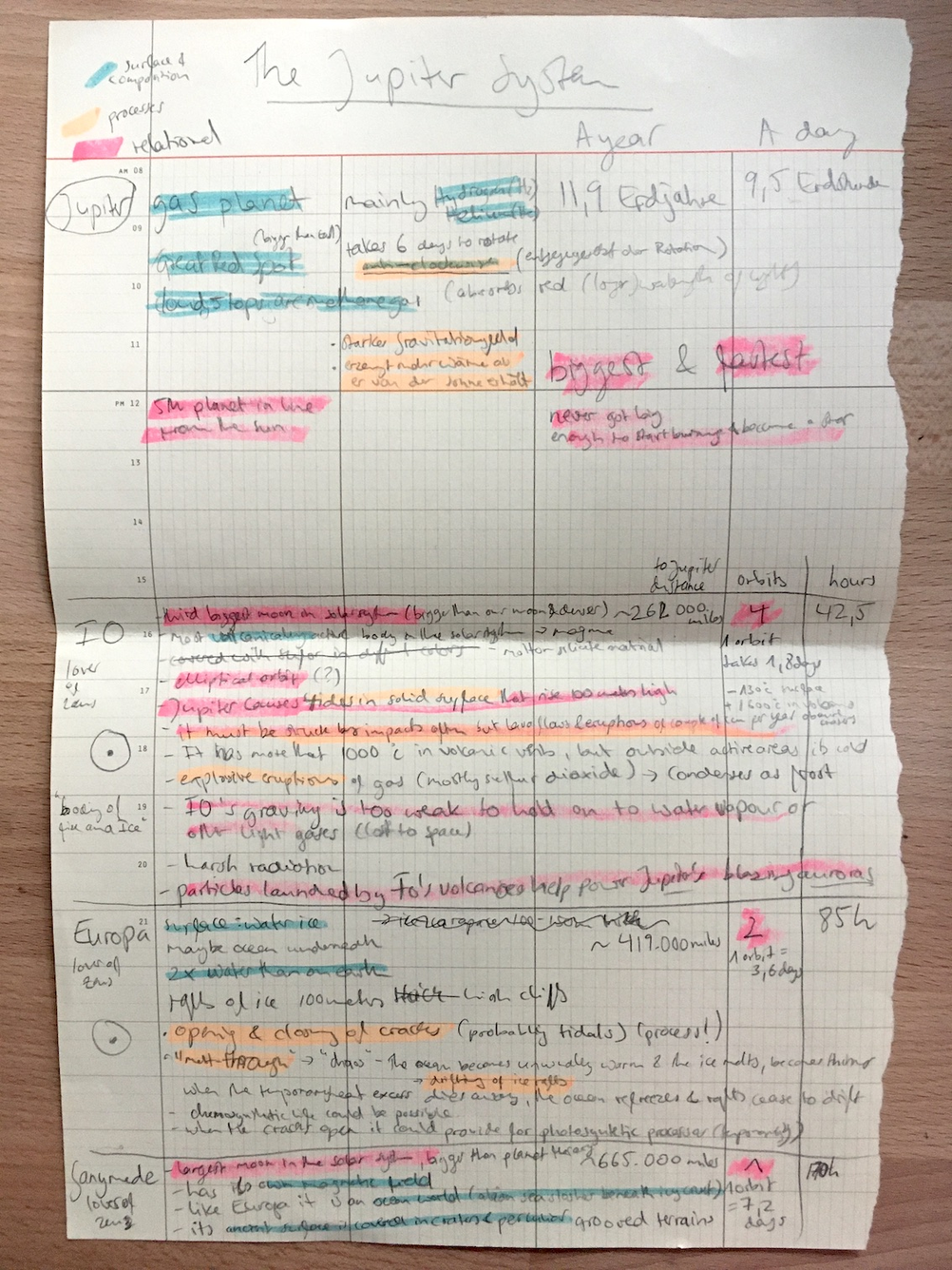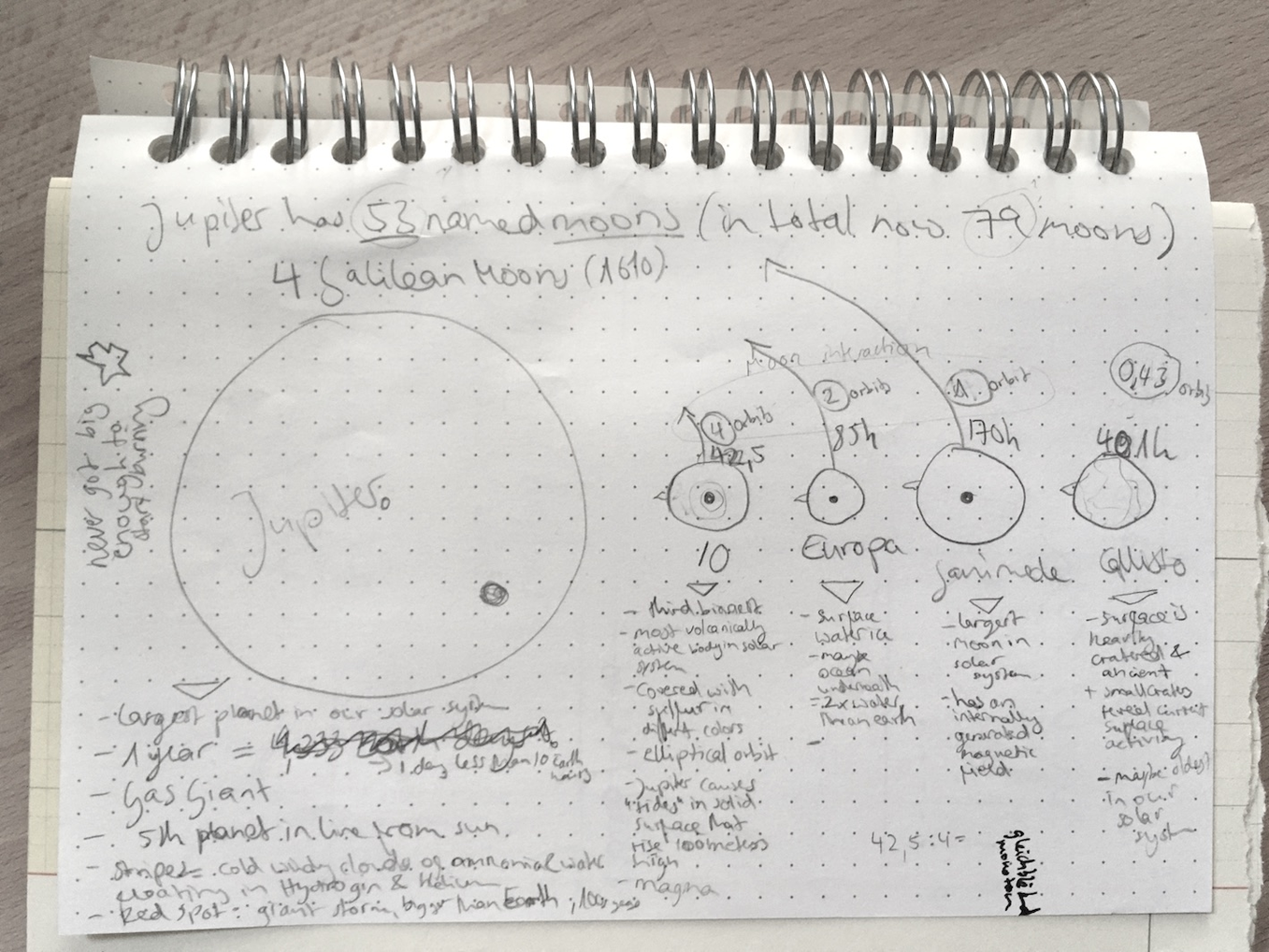 The closer the space bodies are to Earth the more we usually know about them. Many techniques are used to learn more about the interiors of planets and moons. Information “about a planet's density, seismic activity (such as frequency and intensity of earthquakes), magnetic field, heat, mountain ranges and so on” are analysed together (NASA, 2021). Jupiter and its satellites are far away. Therefore, many of the things we know about them are ‘reasoned speculations’. I will use the information I have gathered on Jupiter and its Galilean moons and their relationships in order to guide my creative thought process.