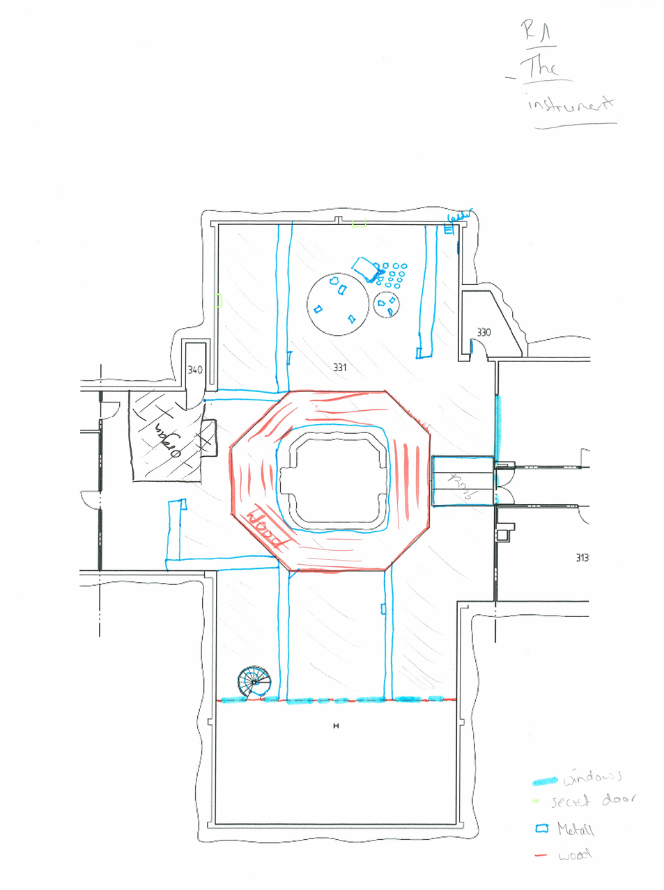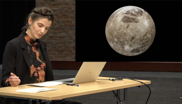 To investigate the material composition of Jupiter and its four Galilean Moons and their spatial relationships through a site-sensitive approach, as outlined in Spaces as Voice Teachers and Composing in Space. Use the accumulated information (in the form of spatial vocal expressions, sounds elicited from the architecture, written notes and drawings on spatial relations) to guide a spatial sound composition that reveals their elements, structure and their connections in a way that can be experienced in a bodily way, in the space.
