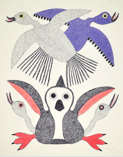 "The immediate environment and individual experiences as well as collective (related to the history of families and arctic communities) are the main sources of artistic inspiration, including themes represented from shamanism and imagination."