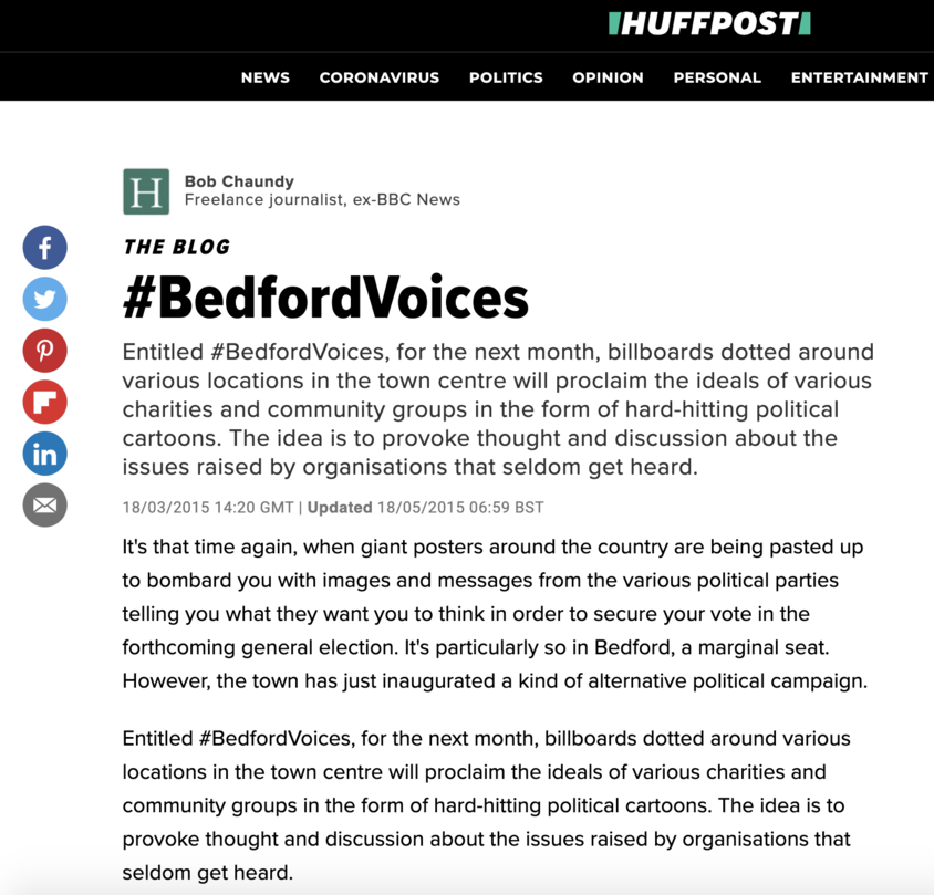 • Bob Chaundy, ‘#BedfordVoices’, HuffPost (UK edition), 18 May 2015: https://www.huffingtonpost.co.uk/bob-chaundy/bedfordvoices_b_6895276.html