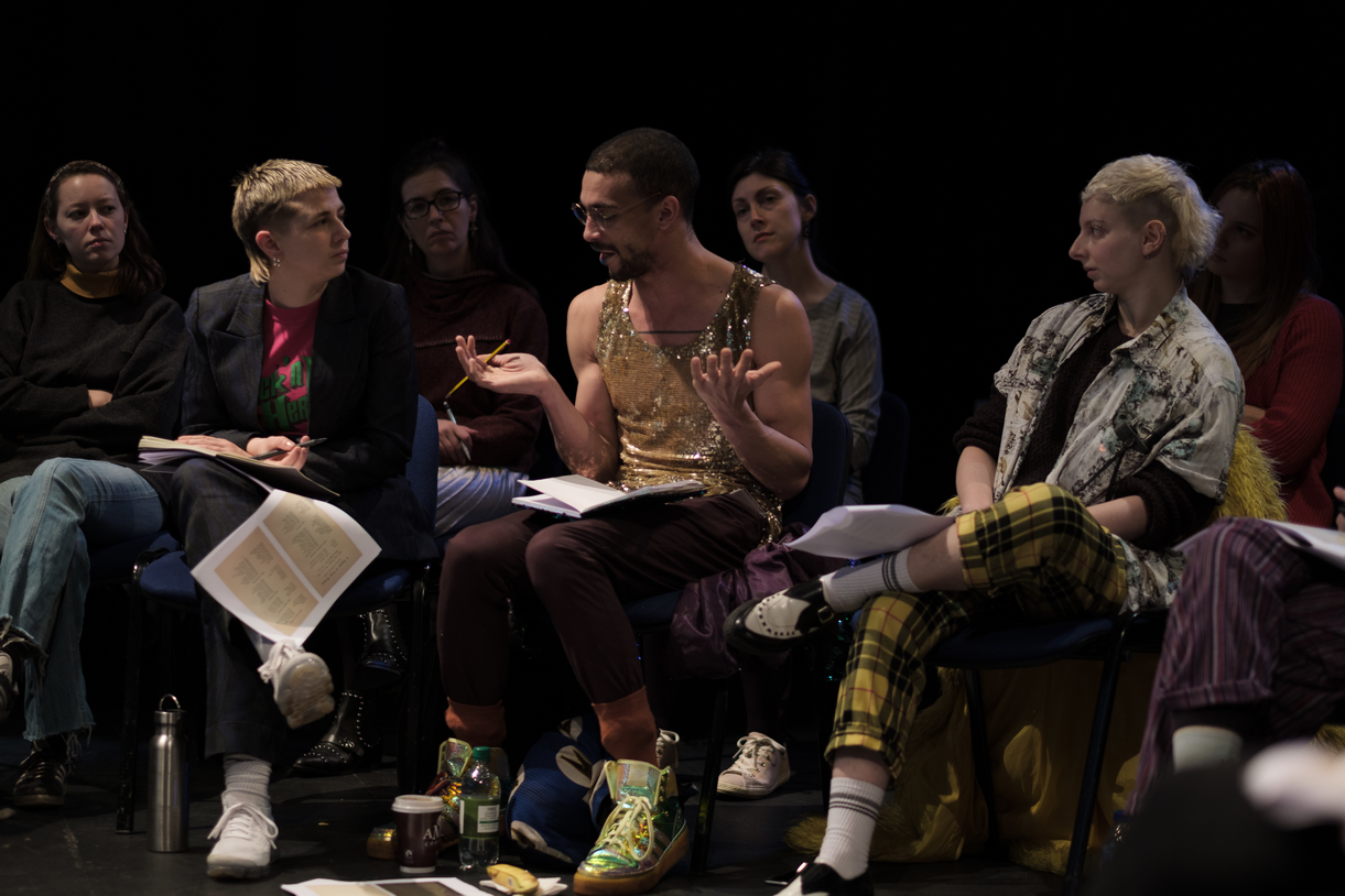 Performer & writer Ray Filar who identifies as non-binary and theatre maker Claudia Jefferies whose work is feminist and concerned with gender as performance were brought in to co-run the workshops with Post Workers theatre. Theatre-maker Emma Frankland who makes award winning work relating to her own experience as a trans woman was also commissioned as guest editor. She delivered one of the workshops and was instrumental in structuring and writing the script.