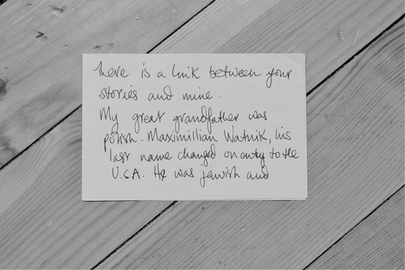 One can say that the visitors expressed their experience of the interwoven elements on a personal level. In this way the history connected to the site, the stories told through the installation, and the stories shared through the messages presented this possible shared story, a collective story, crossing borders, heritage and history.