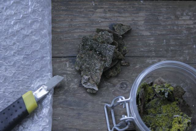 - 2 teaspoons of lichen flakes collected from common lichens growing in a similar microenvironment to where the new lichens are wanted.
