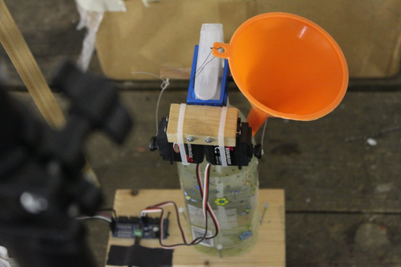 contruction to automatise irrigation. video is with distilled water. formula will be to add xylitol and spirulina, and to run this perhaps twice a day with a timer. {date: 210401}