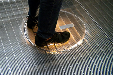 installation version, where the physical plate, miniaturised by a lens, is combined with a one digital image screen and magnifying lens.