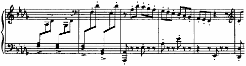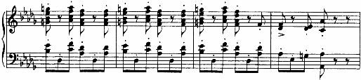 Piano part: Typical slow, syncopated block-chordal accompaniment. |