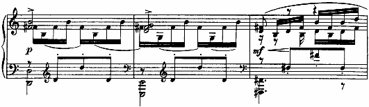 Quotation from Stravinsky Concerto for Piano and Winds (1924), mm.4-6. |