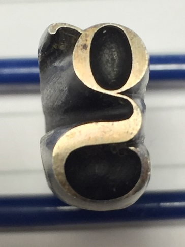Baskerville Punch's lowercase g + Letter face and punch shank in varius sizes