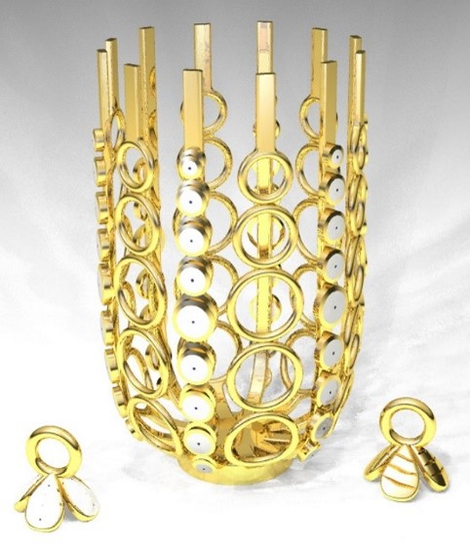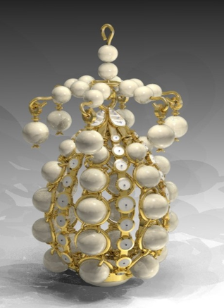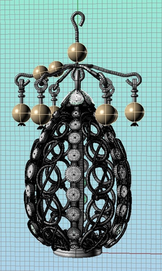 In order to incorporate the additional techniques, plating, pearls, enamel features and fabrication processes, greater access to the structure was required and therefor a rethink of the component structures and fabrication was required. The final design had to remain but an intermediary stage of manufacture was needed, to reconfigure the pearl dropper structure to accommodate the post processing additions. As such reverse engineering the build into component parts.