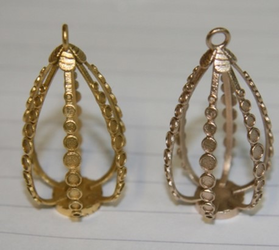 The first and second DLM prints were an exact recreation of the metal components of the pearl dropper but built as a single unit – the physical access between the wire arms of the cage structure was very limited making it impossible to accomplish the downstream techniques required.