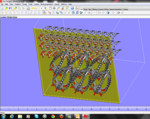 CAD files laid out the nesting of the builds on the printing platform, illustrating the minimal CAD support in red.
